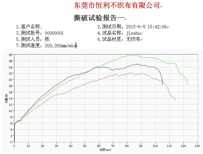 • 無紡布撕破專業試驗報告 克重樣品布: 撕破強力:無紡布受撕破...